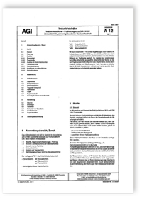 Das AGI-Arbeitsblatt A 12 gilt für Estriche im Industriebau und enthält zusätzliche Aussagen zur Fachgrundnorm DIN 18560 Estriche im Bauwesen. Der Teil 1 des Arbeitsblattes behandelt Zementestrich als Verbundestrich, auf Dämmschicht und auf Trennschicht sowie zementgebundenen Hartstoffestrich. Es wird ergänzt durch Teil 1 Anhydritestrich, Teil 2 Gussasphaltestrich und Teil 4 Magnesiaestrich.