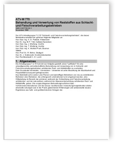 Merkblatt ATV-M 770. November 1995. Behandlung und Verwertung von Reststoffen aus Schlacht- und Fleischverarbeitungsbetrieben (E-Book (PDF-Datei))